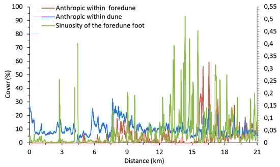 | Profile underlying the surface (m2) | The signed area, bounded by the elevation profile of each transect, corresponds to the integral of the elevation profile. Each profile has been separately calculated along the transect for the beach, foredune, and hind dune |