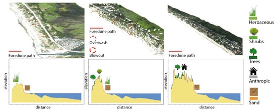 - Keijsers, J.G.S.; De Groot, A.V.; Riksen, M.J.P.M. Vegetation and sedimentation on coastal foredunes. Geomorphology 2015, 228, 723–734. [Google Scholar] [CrossRef]