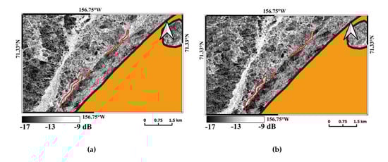 - Meyer, F.J.; Mahoney, A.R.; Eicken, H.; Denny, C.L.; Druckenmiller, H.C.; Hendricks, S. Mapping arctic landfast ice extent using L-band synthetic aperture radar interferometry. Remote Sens. Environ. 2011, 115, 3029–3043. [Google Scholar] [CrossRef]