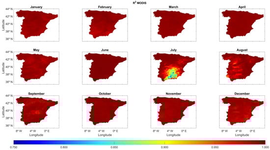 Determination coefficients of the MODIS-estimate-derived model for each location and month.