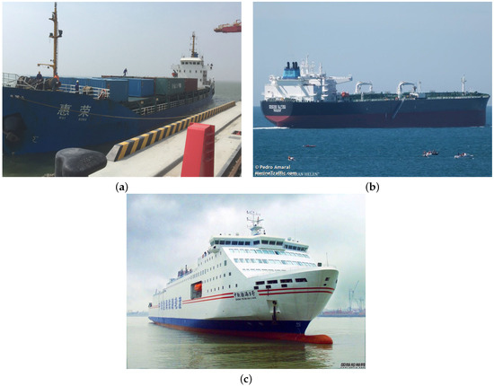 Photos of three targets considered in this paper. (a) Target 1—HUI RONG, the photo is from the website: www.yantaiport.com.cn. (b) Target 2—MARAN HELEN, the photo is from: www.marinetraffic.com. (c) Target 3—ZHONGTIEBOHAI 1 HAO, the photo is from: image.baidu.com.