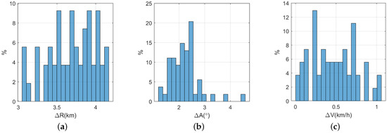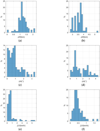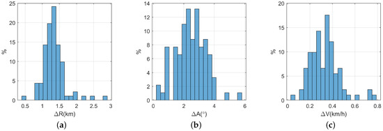 It can be seen from Figure 10 that the majority of range error, azimuth error, and Doppler velocity error for monostatic HFSWR are less than 1.5 km, 4, and 0.6 km/h, respectively.