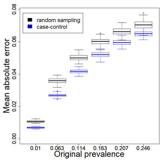 The case-control (CC) approach is widely used in epidemiological studies of rare diseases [34]. In standard cross-sectional or prospective cohort studies, researchers often end up with very few individuals with the rare disease, a major roadblock to determining potential risk factors. The basic idea of the CC approach is to retrospectively sample observations according to their outcome. A CC approach in epidemiological studies typically selects all individuals with the rare disease (i.e., cases) and a sample of individuals without the disease (i.e., controls), thereby circumventing the issue of not having enough individuals with the rare disease. Data that arise from a CC approach will typically yield much better estimates than a random sample as a result of the increased number of cases because the CC approach “concentrates resources where there is the greatest amount of information, namely on the cases” [34].