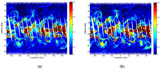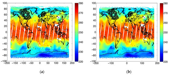 where and represent the deviation of the Jacobian and the geophysical state vector for one individual observation from the corresponding spatiotemporal mean values, with and 0. Therefore, Equation (5) can be rewritten as