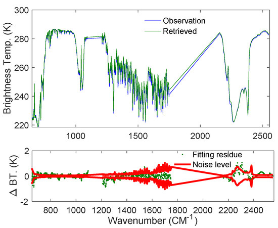 - Smith, W.L.; Weisz, E.; Kireev, S.V.; Zhou, D.K.; Li, Z.; Borbas, E.E. Dual-Regression Retrieval Algorithm for Real-Time Processing of Satellite Ultraspectral Radiances. J. Appl. Meteorol. Clim. 2012, 51, 1455–1476. [Google Scholar] [CrossRef]