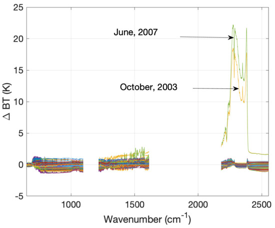- Strow, L.L.; DeSouza-Machado, S. Establishment of AIRS Climate-Level Radiometric Stability using Radiance Anomaly Retrievals of Minor Gases and SST. Atmos. Meas. Tech. Discuss. 2020. submitted for publication. [Google Scholar] [CrossRef]