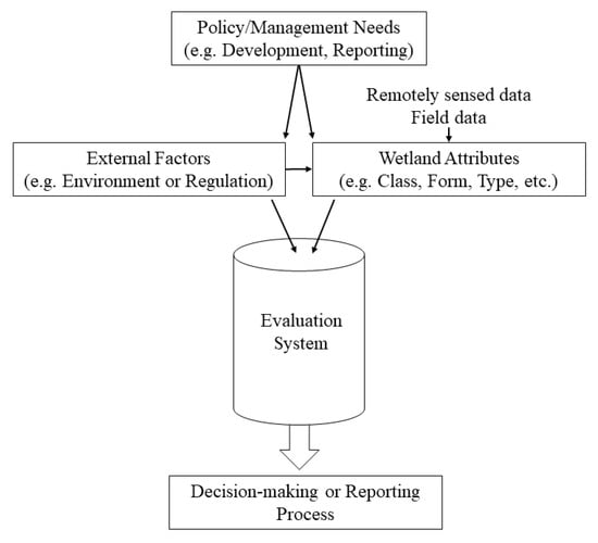 Linking policy and management needs for wetlands through an evaluation system used at the local to federal level for decision-making and reporting by facilitating more accurate measures and interactions of landscape level external drivers and wetland attributes.