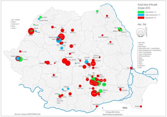 Extension of industrial parks in Romania (cumulative data until October 2019).