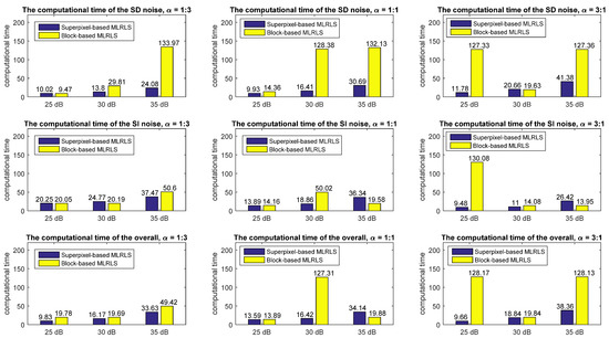 The computational time of the superpixel-based MLRLS and the block-based MLRLS (unit: second).