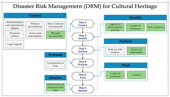 - Step 6: Monitoring: Monitoring also includes an update and improvement of the measures that were taken. Therefore, if anything changes the context of the cultural heritage site, this should be taken into consideration, as well as any inputs from the new knowledge or technology.