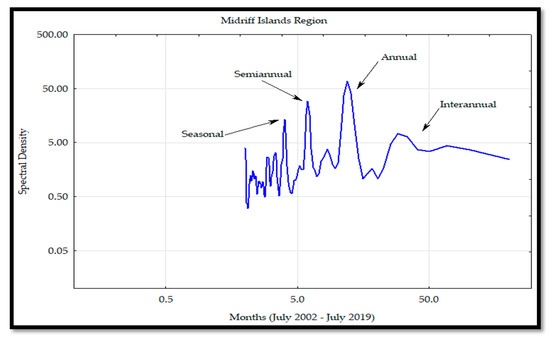 Spectral analysis of the chlorophyll a (Chl a) concentration for the midriff region (MIR) on the mainland coast of the Gulf of California (GC).