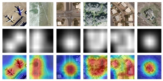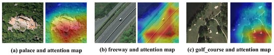 Figure 4 shows the sketch map of generating attention maps from all feature maps by weighting different channels of feature maps from the last convolutional layer of the fine-tuned ResNet18 model with a RELU function. As can be seen in Figure 4, the airplanes in airport class are considered as important objects. When training networks, the airplane in airport scenes may be laid with more emphasis, which may decrease the influence of redundant objects on extracting high-level features.