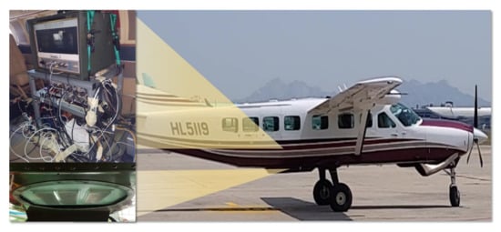 Captive flight test techniques include a full range of techniques for verifying real-time inertial navigation, integrated navigation and TRN performance by equipping a real aircraft with the proposed AP-TAN. In this study, we designed and manufactured a testbed including an IRA, an INS, a GNSS receiver, a barometer, a PPU, and a SPD, as shown in Figure 11. Prior to the test evaluation, digital surface model (DSM) and DEM with a 3m resolution were constructed using LiDAR. The captive flight tests used a CESSNA 172 Skyhawk with a hole to mount the IRA antenna on the bottom of the fuselage as shown in Figure 11. To minimize the mounting errors between the IRA antenna assembly and the INS, the testbed was manufactured to be mounted on the same mounting plate. The IRA antenna assembly was installed at the bottom of the mounting plate towards the ground. The INS was installed on the opposite side of the plate where the IRA antenna assembly was installed. All other equipments were mounted inside the aircraft using a separate rack. The PPU developed in this study was equipped with an series i7-4799EQ SBC with a 8 GB DDR3 memory, AMD E8860 embedded GPGPU, and 64 GB SSD for high-resolution DEMs. In the SBC, inertial navigation and integrated navigation were performed, whereas TRN and DEM real-time processing were performed in the GPGPU board. The GNSS measurements obtained by compensating the lever arm between the GNSS antenna and the INS were used. In addition, the mounting misalignment angle between the INS and the IRA antenna was measured and this misalignment angle was compensated when converting the IRA measurement into the three-dimensional relative distance on the ENU coordinate. The threshold of the misalignment angle error was set to ~ through simulations and the measured error was ~.