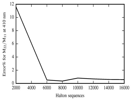 Error% versus Halton sequences for reduced M22/M11 element at 410 nm.