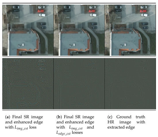 Although the resulting images look realistic, the compensated high-frequency details such as image edges may cause inconsistency with the HR ground truth images [22]. Some works showed that this issue negatively impacts land cover classification results [23,24]. Edge information is an important feature for object detection [25], and therefore, this information needs to be preserved in the enhanced images for acceptable detection accuracy.