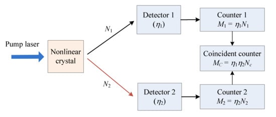 where NC is the rate of photons that simultaneously reach the two channels. The correlation of photon pairs guarantees N1 = N2 = NC, therefore the absolute quantum efficiencies of two channels will be