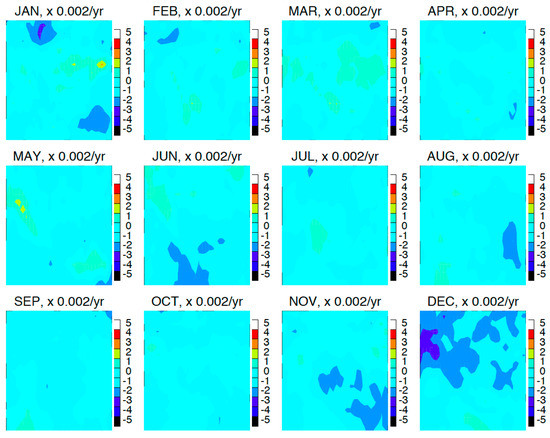 39]. There are decreasing trends in November and January over the eastern TP region (e.g., Bhutan, Myanmar and Bangladesh), which is likely related to the observed decreases in snow cover [