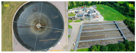 (a) Example of trickling filter and (b) example of activated sludge within two independent wastewater treatment plants.