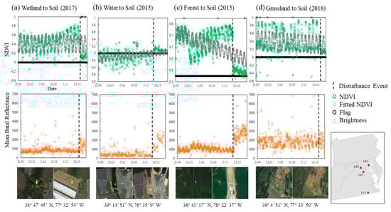- Masek, J.G.; Goward, S.N.; Kennedy, R.E.; Cohen, W.B.; Moisen, G.G.; Schleeweis, K.; Huang, C. United States forest disturbance trends observed using Landsat time series. Ecosystems 2013, 16, 1087–1104. [Google Scholar] [CrossRef]
