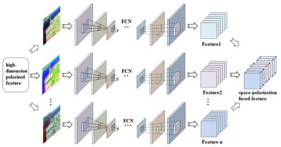 - FCN: A single pre-trained FCN is adopted to learn the multi-scale spatial structure of the PolSAR data. This nonlinear feature is actually a deep abstract semantic representation with relatively simple polarization properties.