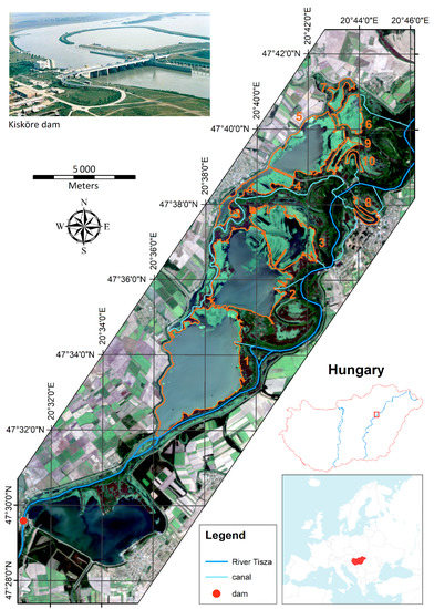 Lake Tisza (Figure 1) is an artificial water body in Hungary. The water level of the lake is regulated, and sedimentation and vegetation spread represent a continuous issue: differences in vegetation coverage and water depth are seen at more-or-less the same water level. The aims of this research were to reveal: (i) whether there any temporal trends in the spread of aquatic vegetation; and (ii) which water basin types exhibit the fastest succession rate. We also aimed to develop a method to determine the risk of vegetation spread by water basins of the lake using satellite images.