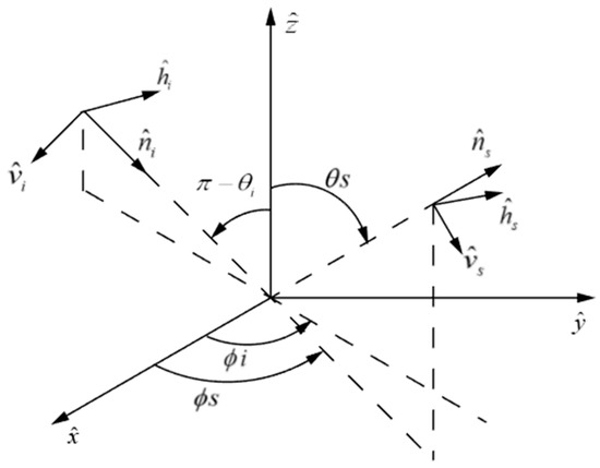 With this formula (Equation (7)), the bistatic scattering cross section for any combinations of transmitted and received polarizations can be calculated, where the subscripts t and r are the transmitted and received polarizations, respectively; and are the normalized Stokes vectors characterizing the transmitter and receiver polarizations, respectively.