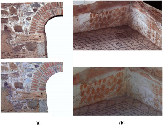Working area 3: Rooms with mosaic floors (Figure 5c). Mosaics are typically repetitive geometric figures materialized by a multitude of small tiles. Thus, their 3D reconstruction could pose a challenge for the proposed system, leading to errors in matching homologous points causing gross errors or even the impossibility of orienting the images. Regarding data capture, work in this area requires long and complex trajectories, in order to cover all areas without accumulating drift errors. In addition, the small size of the tiles that make up the mosaic floors and their different colors demand a high capacity in the resolution and definition of the captured textures.