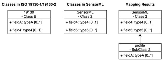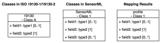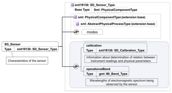 ISO sensor model elements that share a similar context but differ in properties with SensorML classes will inherit the shared properties from SensorML classes and form into subclasses along with their unique properties. The inherited properties must meet other constraints, such as occurrence times or data type (Figure 4).