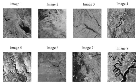 In the experimental part, we performed several experiments to analyze the results of the proposed approach. Note that, in all the experiments, the Db4 wavelet with one level of decomposition has been utilized. Besides this, we have used eight original satellite images, as shown in Figure 7. The dataset is available in Ref. []. We also utilized four hyperspectral images, namely, Indian Pine (captured by AVIRIS sensor), Washington DC Mall (captured by HYDICE sensor), Pavia Center and Pavia University (captured by ROSIS sensor). The dataset is available in Ref. []. For the optimization algorithms used in this section, the swarm size is considered 30 and the maximum iteration 500 []. The parameters of the HHO and JADE optimizers are the same as those which have been utilized in Refs. [] and [], respectively. Note that in these experiments, additive white Gaussian noise (AWGN) with zero mean and different standard deviations has been used for noisy images. For these implementations, Matlab programming language has been used on a computer with Intel Core i7 and 16 GB Ram.