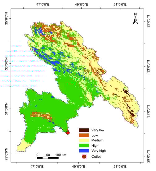 Five slope classes were detected in the present study (i.e., <10°, 10–20°, 20–30°, 30–40°, and >40°). A substantial area of the basin falls within the first slope category (i.e., <10°). This category, situated in the southwestern parts, has the gentlest slope and lowest topographic elevation. Other slope classes exist mainly in the eastern parts of the basin (Figure S5).