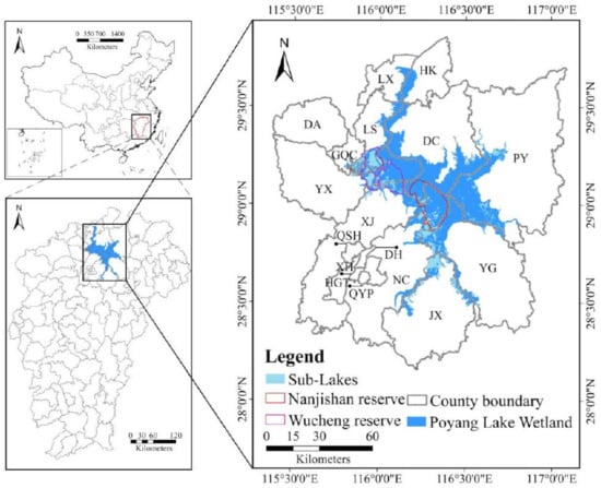 - Liu, Y.; Fan, N.; Yu, X.; Xia, S.; Qi, S. Identification of Wetland Boundaries of Poyang Lake and Analysis of Seasonal Change Based on Remote Sensing and GIS technology. Resour. Sci. 2010, 32, 2239–2245. (In Chinese) [Google Scholar]