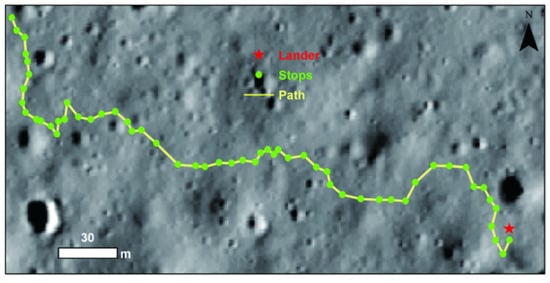 The location of Chang’E-4 landing site and the traverse of Yutu-2 rover for the first 16 lunar days. The lunar background was obtained using the imagery by the Lunar Reconnaissance Orbiter Camera.
