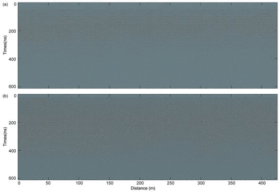 High-frequency LPR profile along the track of rover Yutu-2 after the series of data processing. (a) The CH-2A data; (b) the CH-2B data.