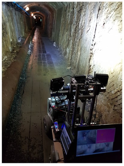 Murphy [11] presented a brief tutorial on the application of unmanned vehicles for the urban health and rescue, with the focus put on problems related to human–robot interaction. In addition to the grounded domain theory consisting of workflow and information flow models, helpful from the point of view of the human–robot interaction analysis, some issues to be faced for the sake of appropriate preparation of skilled operators have been underlined. In [12], tools for data association and navigation in uneven surroundings have been presented, which allowed to successfully create 3D maps with satisfactory accuracy. The robot tested by the authors managed to perform fully autonomous image acquisition in some of the corridors in an abandoned mine, where the path was relatively simple to navigate. A lot of research efforts was made to enable autonomous operation of robots, the crucial part of which is to ensure avoiding of obstacles. A specific example of an obstacle avoidance system designed for mine rescue robots can be found in [13]. In the paper, the structure of a sensor system and fuzzy reasoning-based obstacle avoidance technique has been shown. A rescue multi-robot system built by the authors has been presented in [14], that used a set of node robots to create a communication path based on Zigbee standard. To enhance overpassing of obstacles an interesting articulated snake-like design has been suggested for one of the robots. In the project record paper of Center for Mining Innovation in South Africa from 2012 [15], the so-called Mine Safety Platform has been introduced. Robots of both types: tracked and legged, were tested in order to identify the design criteria for a reconfigurable robot, which role could be to inspect hanging walls after blasting (from the safety point of view) or assess the gold grade in mining faces. The problem of visualizing data in the best interpretable and understandable way has been also raised in the work. The authors of [16] focused on the navigation of rescue robots in underground mining, contributing an improved algorithm capable of fusing multisensor data. Using of the Back Propagation neural network (BPNN) was proposed as a tool for improving the matching degree of data from various sensors, and a combination of the Extended Kalman Filter (EKF) with BPNN was proven to be effective in solving the mismatching problem in data fusion of the classic EKF approach. Few significant examples of UGVs used in underground mines have been presented in [17] and analyzed, with the aim to derive functional requirements of this type of technology. The article in [18], studying the mechatronics and information and communication technology development in the mining industry, provides some examples of both: inspection mobile robots to be used in the catastrophe-affected areas of mines and robots which can perform some basic labor. The review article in [19] drew some conclusions from the analysis of multiple rescue robotics applications in Chinese coal mines, highlighting technological, market, and policy license limitations and problems to be solved in order to create practical solution. What is more, an example of recent local research at the Wrocław University of Science and Technology can be given. The authors of [20] have proposed to apply an Unmanned Ground Vehicle (UGV), equipped with RGB, thermal imaging cameras, and a localization system for the maintenance of belt conveyor. The main task for the robot presented in the above mentioned paper was to identify overheated idlers basing on the detection of so called “hot-spots”; however, it was suggested that the functionality could be extended by equipping it with some gas and environmental parameters sensors (temperature, humidity, air velocity). More examples of the implementation of robotics for raw material industry can be found in the following works [21], where legged robots for inspection purposes have been presented among others in [22,23,24] with examples of micro-aerial vehicles.