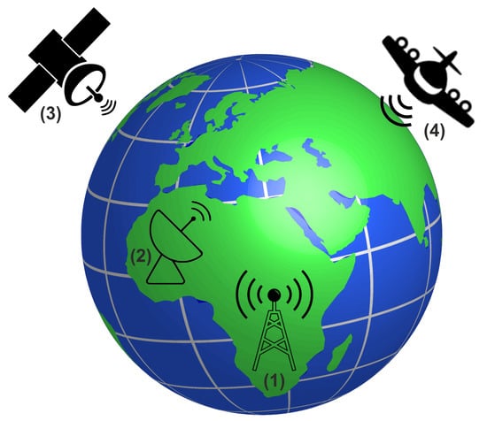 Example of the common RFI sources: (1) radios, (2) radars, (3) communication systems, and (4) airborne sensors.