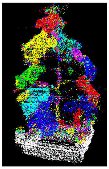 Figure 5. Oversegmented point cloud as a result of using the algorithm proposed in Reference [26]. The points’ affiliations to the respective segments are indicated by the colouring.