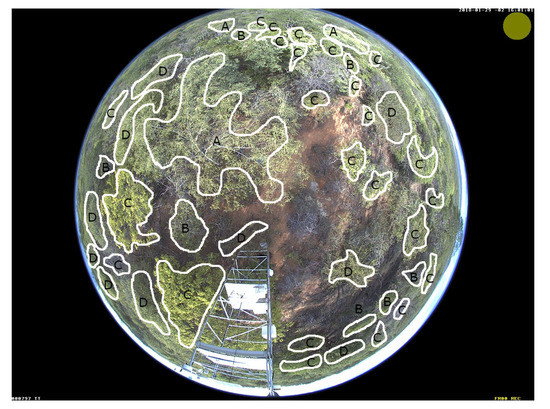 The VIs (GCC, SAVI, and NDVI) used to compare with the results obtained from the phenocams (GCC) were calculated for the tower region; we assumed that the tower region consisted of a circle around the flux tower with a radius of 50 m, which is compatible with the camera field of view. The VIs (Table 3) used to compare with the sap flow (F and F) data and with were calculated using the pixels that covered the monitoring plot area (Figure 1).