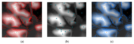 The second type of extraction method divides the spatial topography and geomorphology to obtain the mountain vertex and includes methods, such as the Hydrological Basin Extraction Method and the Contour Subdivision Method [30,31,32,33,34]. The Hydrological Basin Extraction Method [35] reverses the positive mountainous landform system, computes the flow direction to subdivide the watershed, and then calculates the grid to obtain the mountain vertex. Affected by the DEM interpolation, the fill-in threshold, the Watershed division calculation window, and other factors [36,37], this method does not identify erroneous mountain vertices and would therefore need to eliminate camouflage points. For the Contour Subdivision Method, contour lines are used to determine and interpolate the innermost mountain vertex area. One study [38] used contour lines and elevation values to characterize the terrain and constructed an analysis model, which was then used as a constraint to obtain the final results. Another study [39] proposed improvements based on the AKIMA Algorithm. The method improves the accuracy of the mountain vertex range interpolation and improves the extraction results. However, the Contour Line Division Method ignores the effects of adjacent mountains on the extraction results and are easily affected by topographical changes. Several methods have been proposed that combine these two methods in order to improve the accuracy, such as the Water and Contour Division Overlay Method [40] and the Contour Line and Neighborhood Analysis Overlay Method.