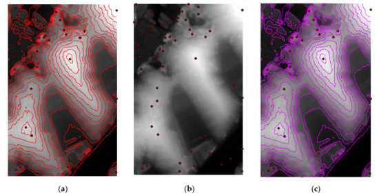 - Guifang, H.; Minshi, L.; Lifan, F. Peak extraction from contour based on the improved AKIMA Algorithm. J. Geom. Sci. Technol. 2019, 36, 400–405. [Google Scholar]