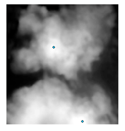 The Hotspot Analysis Clustering Algorithm was then used to process the point vector DEM into the DEM Hotspot Analysis Image. The high-value regions (hotspot) were then extracted from the DEM Hotspot Analysis Image, where the Improved Eight-Connected Extraction Algorithm was employed to extract the mountain vertex.