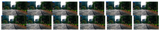 Figure 14 shows the video processing results of several consecutive frames. The brightness between adjacent frames is smoothed as presented in Figure 18, and the video flicker is significantly suppressed. Figure 19 shows experiment results of the single image haze removal algorithm based on the transposed filter. The visual quality is equivalent to the current state-of-the-art dehaze algorithms [10,11,12,13,14,29,30,31,32,33,34], and even some details are brighter in color.