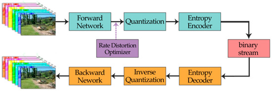 - Jiang, F.; Tao, W.; Liu, S.; Ren, J.; Guo, X.; Zhao, D. An End-to-End Compression Framework Based on Convolutional Neural Networks. IEEE Trans. Circuits Syst. Video Technol. 2018, 28, 3007–3018. [Google Scholar] [CrossRef]