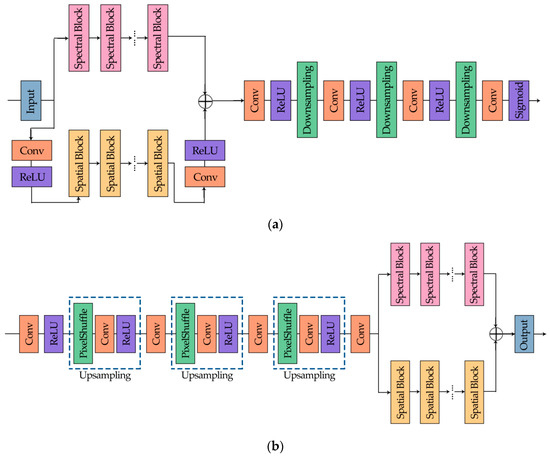 The architecture of the forward and backward network is shown in Figure 5, the spectral block and the spatial block are shown in Figure 6.