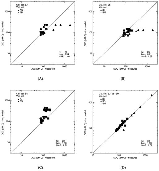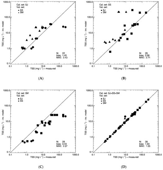 Traditional methods of measuring TSS and DOC require in-situ water sampling and laboratory analysis, which is expensive, laborious, time-consuming and weather-dependent. Recent advances in sensor technology have made it possible to monitor TSS and DOC at high temporal resolution with in-situ optical sensors [,,]. However, each sensor can only provide data from a single geographical location, and so it remains a challenge to improve understanding of the larger-scale connections between source, pathway and sink. Another limitation of in-situ sensors is that each water quality parameter must be measured with a dedicated sensor, for example, optical scattering sensors for turbidity and TSS [], fluorometers for chlorophyll and CDOM [,], and beam attenuation and absorption sensors for optical properties of water constituents []. Alternatively, in-situ measurements of reflectance spectra, coupled with a suitable bio-optical model, can be used to retrieve the concentrations of multiple biogeochemical components [,]. However, this reflectance-based approach has similarly limited spatial coverage.