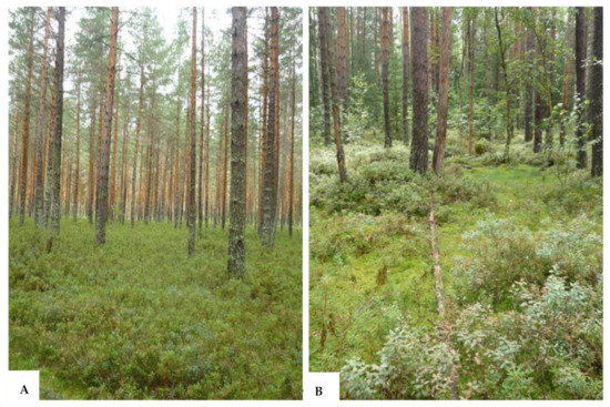 - Rysin, L.P.; Savel’eva, L.I. Sosnovye Lesa Rossii (Pine Forests of Russia); Tovarishhestvo nauchnyh izdanij KMK: Moscow, Russia, 2008; ISBN 978-5-87317-512-3. [Google Scholar]