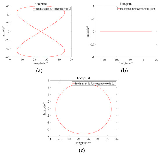 Different footprints. (a) Type “8” orbit. (b) Type “–” orbit. (c) Type “o” orbit.