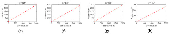 (a–h) represent the curve of the phase error at different latitude argument on the orbit along with the elevation.