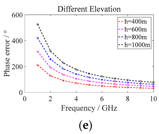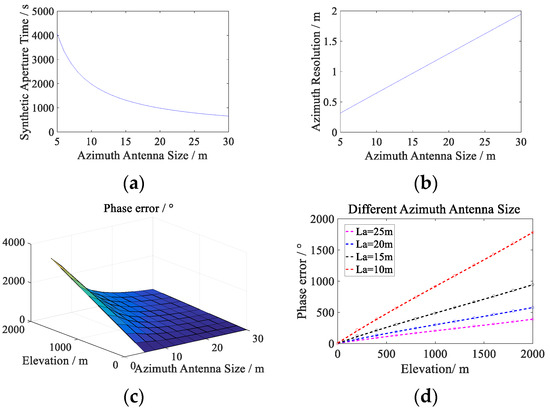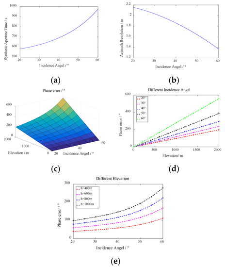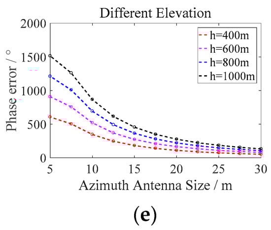 It is well-known that the synthetic aperture time is affected by the azimuth antenna size, wavelength, and the incident angle [24]. Therefore, it is necessary to analyze the change of phase error with elevation under the influence of different azimuth antenna sizes, wavelengths and incident angles.