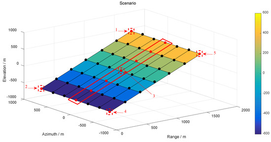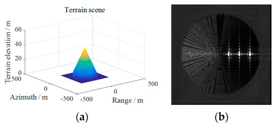 The influence of the elevation spatial variation is analyzed in Section 3. In this part, the main purpose is to verify the correctness of the improved algorithm proposed to solve the spatial variation problem. The dot-matrix targets and distributed targets with elevation information are then analyzed.