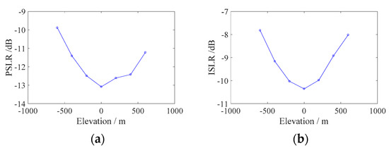 It can be seen from Figure 21 that the elevation spatial variation has a serious impact on azimuth focusing, and the error becomes more severe with the increase of the elevation, which is consistent with the previous analysis.